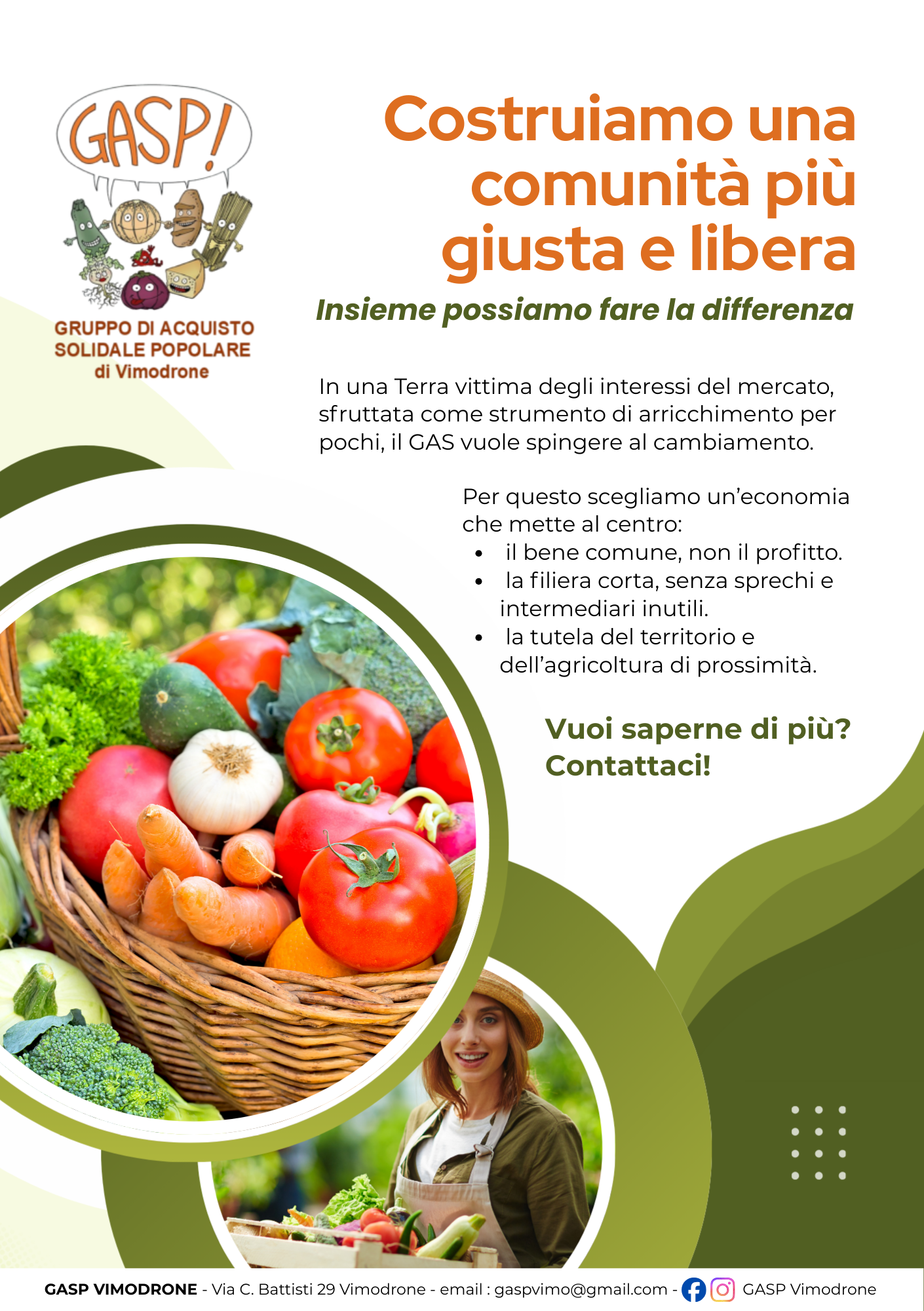 L’associazione GASP (Gruppo di Acquisto Solidale Popolare) è operante a Vimodrone dall’anno 2004. L’Associazione non ha fini di lucro e ha per scopo l’operare nel campo sociale e cooperativistico al fine di promuovere: